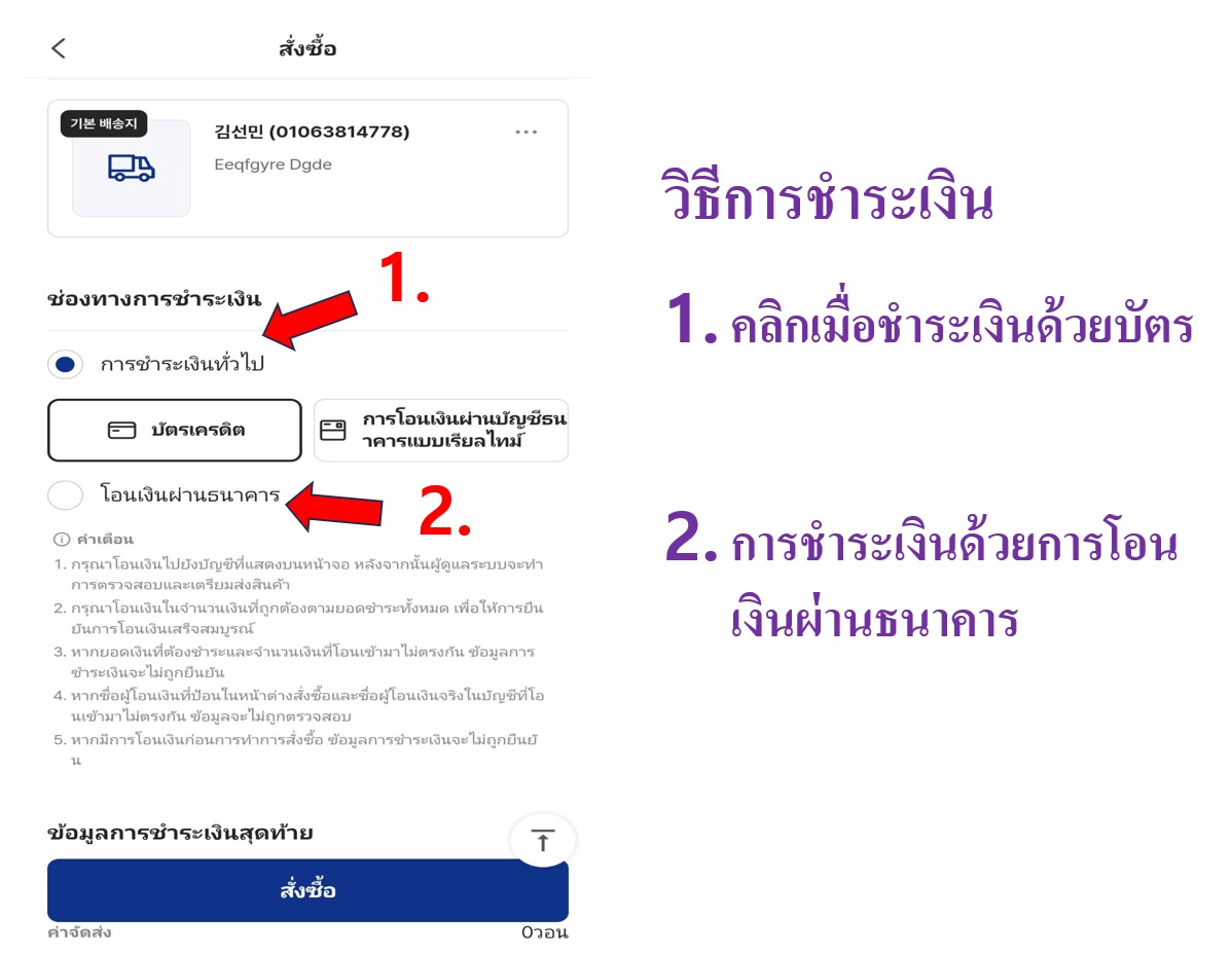 เลือกระหว่างการชําระเงินด้วยบัตรและการชําระเงินมัดจํา(เงินสด)